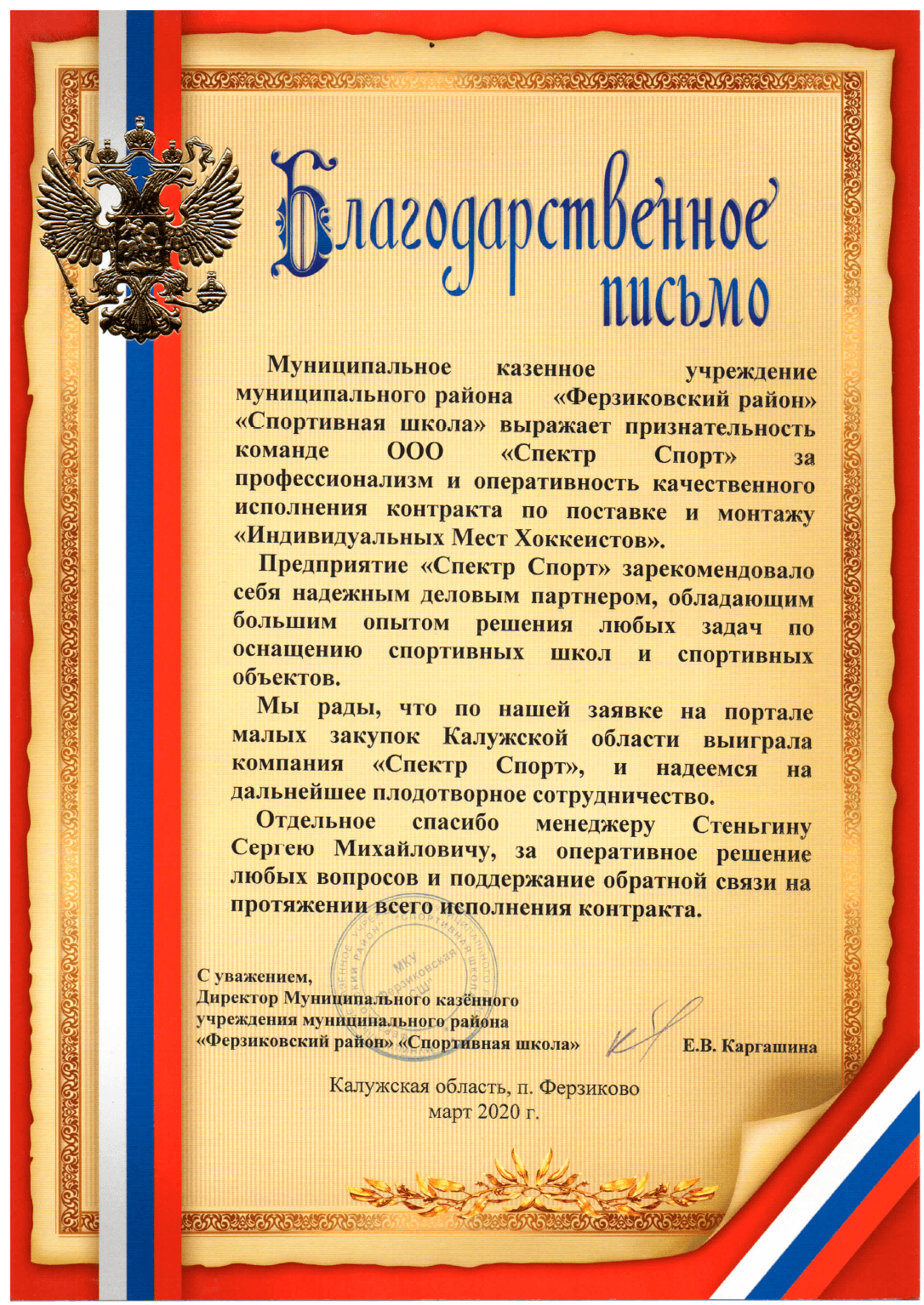 Благодарственное письмо